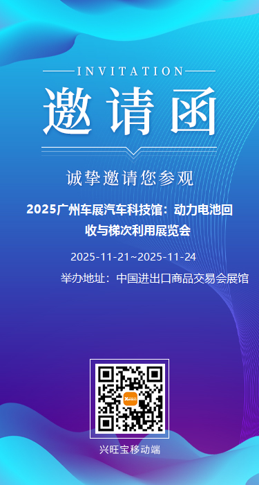 2025广州车展汽车科技馆:动力电池回收与梯次利用展览会,将于2025-11-21 至 2025-11-24在中国进出口商品交易会展馆举办,主办单位为中国对外贸易中心 汽车行业分会 中国汽车工业协会。本届展会规划展览面积数万平方米,参展品近千种,观众人数众多。诚邀参展参观!