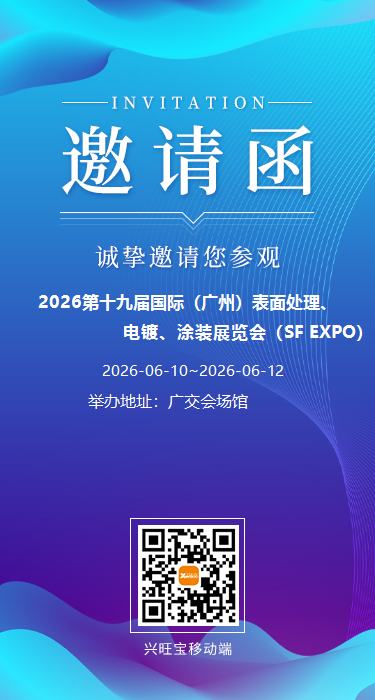 第19届国际(广州)表面处理 电镀 涂装展览会(简称SF EXPO)于2026年6月10-12日在广州·广交会展馆举办。SF EXPO以“聚焦科技创新,赋能产业发展”为主题,展示前沿发展趋势,探讨热门技术,提供商贸交流、供需对接、新品展示的一站式服务。上届展会展出面积约20000平方米,吸引了来自中国、美国、德国、韩国、英国、马来西亚、泰国、加拿大等国家和地区共计503家企业参展。千商万企汇聚羊城,逛展、洽谈、签约、交易、参会。展期3天接待35个参观团,国内外观众达到30024人次,现场火热非凡,相比上届展会面积增长33.5%,专业采购商增长7.9%。