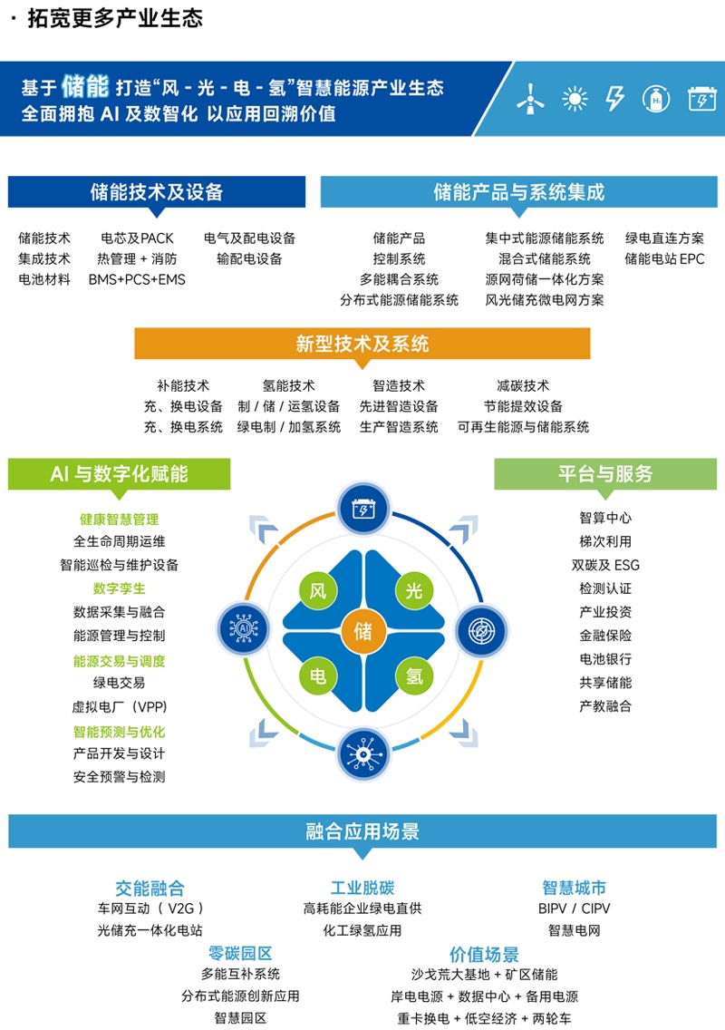 储能产品(户储、工商储、大储、UPS、EPS、移动式电源);集中式储能(电网侧、发电侧、调峰 / 调频、共享、独立);工业节能(火电灵活性改造、氢电热多能耦合、高寒 / 沙戈荒等极端环境适配技术)
