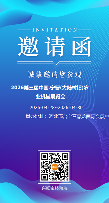 2026第三届中国.宁晋(大陆村镇)农业机械展览会将于2026年4月28-30日在河北邢台宁晋县晶龙国际会展中心盛大启帷,本届展会规划面积30000平方米,计划展位600余个,汇集整机、农机配件、零部件产品、农机具(播种机、收获机、搂草机、无人机植保等)、智能农机、自动化设备、园林机械、畜牧机械、汽配件等服务"三农"的农机产品,预计吸引专业观众1万人以上,诚邀各地农机同仁参与本届盛会。本次展会将是各企业、经销商、农业大户的线下见面会,更是一次产品相互交流、寻找合作共赢商机、服务"三农"现代化发展的盛会。